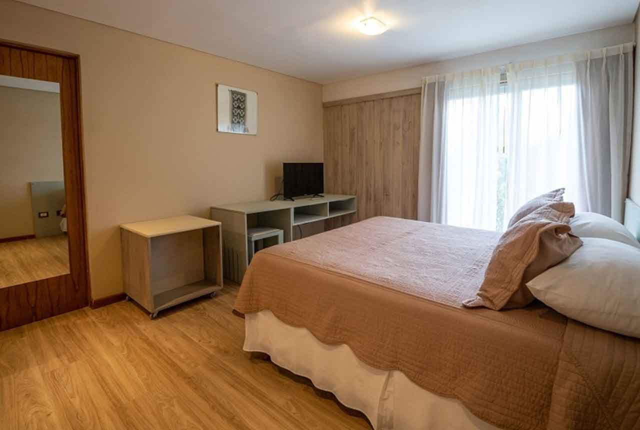 Suite para 2 personas: amplia, de 26 mts 2, con cama matrimonial o dos singles, baño con hidromasajes, equipada con kitchinette, TV 32 “, heladera, electrodomésticos, vajilla y utensilios. Vista hacia el bosque. Internet wi fi.